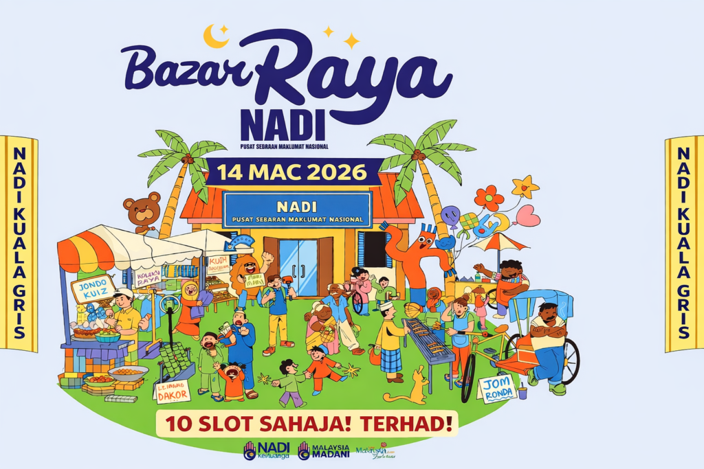 Ayuh datang beramai-ramai memeriahkan Bazar Raya NADI Kuala Gris 2026. Sokong usahawan tempatan, nikmati kemeriahan bazar, dan raikan suasana menjelang Hari Raya bersama komuniti!